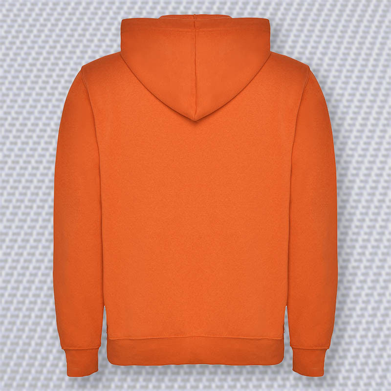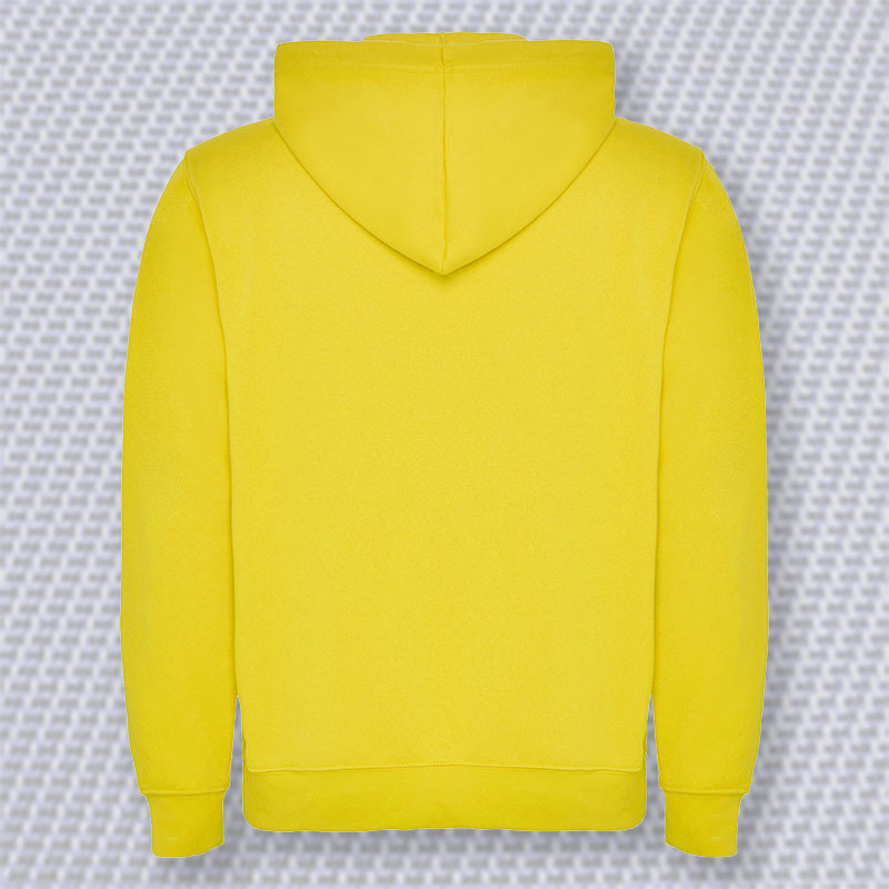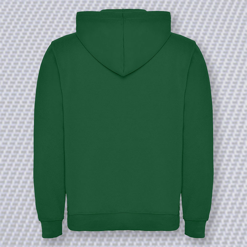 Dessuadora caputxa unisex, amb butxaca cangur i cordó ajustable. Punys i cintura de punt canalé 1×1 amb elastà. Model de nen sense cordó.